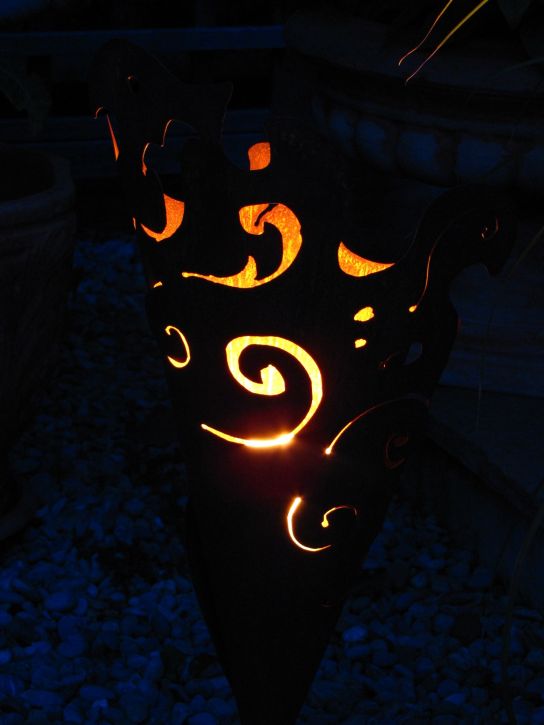 Edelrost Tüte Barock als dekorative Gartenfackel www.angels-garden-dekoshop.de