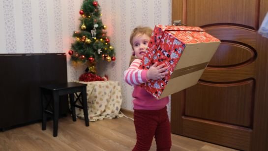 The box is too large for the girl