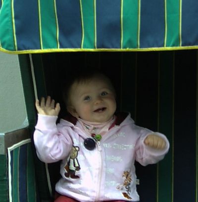 das ist emily im juli an der ostsee in nem babystrandkorb!
