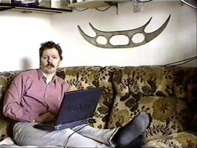 Auch ein Bild aus mein Film auf http://www.ham-tv.de Ich sitze auf dem Sofa mit Laptop.