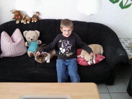 Jonas mit Kater Benny & Hundedame Milly
