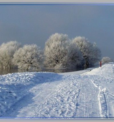 Winterlandschaft auf dem Magdeburger Elbdamm