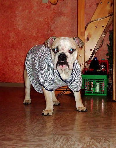Falsch, keine Tierquälerei - nach seiner OP musste unser Hermann dieses Hemdchen tragen...