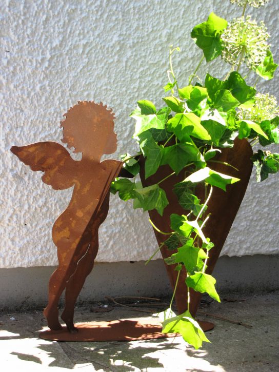 Engel mit Herz zum Bepflanzen aus Edelrost www.angels-garden-dekoshop.de