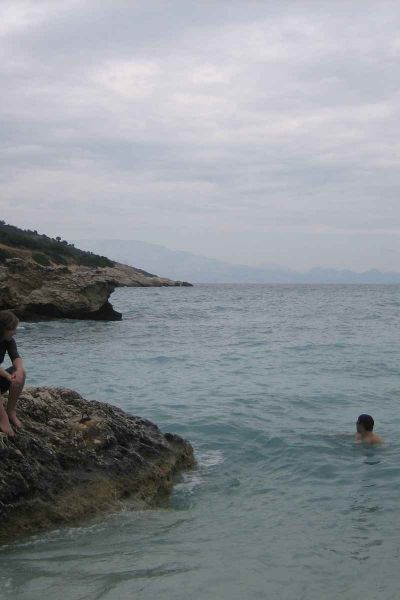 Ist ein wenig gefährlich so bei den Felsen....schönes Foto!