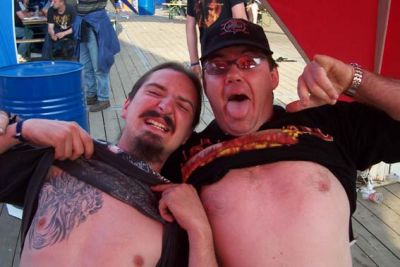 Da bin ich mit Aaron aus Neuseeland zu sehen; ich glaube wir beide waren betrunken... Graspop 2004...