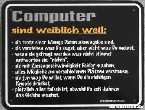 Computer sind weiblich Das hab ich heut gefunden und wenn man mal drüber nachdenkt ist das gar nicht so falsch