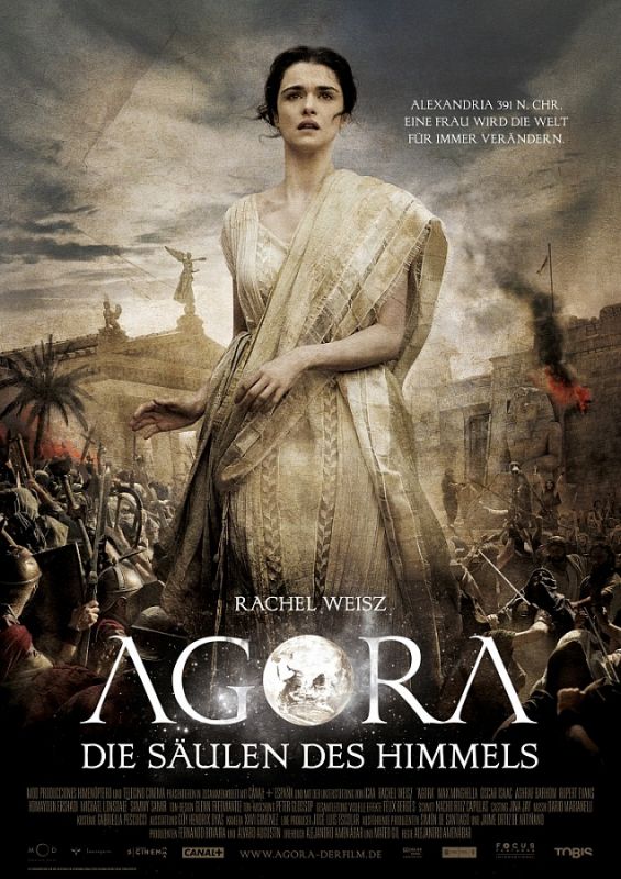 Im Jahr 391 nach Christus ist das stolze Alexandria wie die gesamte Provinz Ägypten Teil des Römischen Weltreichs. An der berühmten Bibliothek der nordafrikanischen Metropole lehrt die ebenso schöne wie kluge Hypatia (Rachel Weisz) Philosophie, Astronomie und Mathematik. Im Unterrichtssaal beschreibt sie den Kreis als die vollkommenste Form im Universum und lässt ihre Schüler Überlegungen darüber anstellen, welche geheimnisvolle Kraft die Dinge, allen voran die mächtigen Himmelskörper, an ihrem Platz hält. Mit im Saal ist auch Hypatias junger Sklave Davus (Max Minghella), der die gelehrten Diskussionen mit großer Aufmerksamkeit verfolgt. Dass Orestes (Oscar Isaac), einer der Schüler, seine Herrin nach dem Unterricht mit zärtlichen Worten umschmeichelt, beobachtet Davus mit finsterer Miene.