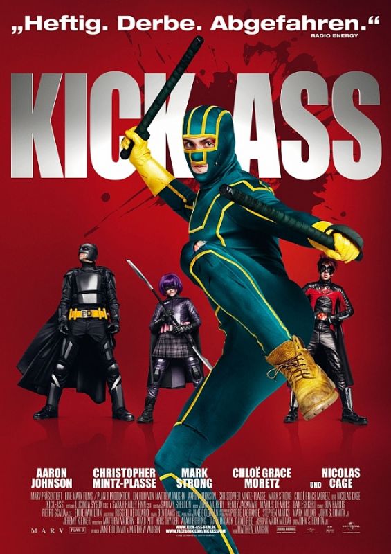 Dave Lizewski steckt mitten in der Pubertät, und er hat kein Ventil, um seine Hormone zu bändigen. Also sucht er sich seinen Kick, indem er als maskierter Superheld Kick-Ass auftritt, wie im Comic, aber eben im richtigen Leben. Das bekommt er auch bald zu spüren, denn er wird bei seinen Einsätzen fürs Gute regelmäßig brutal zusammengeschlagen. Doch zugleich wird er als Held gefeiert: endlich einer, der gegen das Verbrechen aufsteht! Als er wieder mal in höchster Gefahr schwebt, von ein paar Junkies abgestochen zu werden, erhält er unverhofft Hilfe: Hit-Girl und Big Daddy greifen ein, tatsächliche Superhelden mit entsprechender Ausrüstung und der körperlichen Konstitution. Auch wenn Hit-Girl gerade mal elf Jahre alt ist. Die beiden haben es besonders auf den Drogenbaron Frank D’Amico abgesehen – und der kommt schnell auf den Trichter, dass Kick-Ass ihm gefährlich werden könnte. Und Hit-Girl. Und Big Daddy. Er will sie in eine Falle locken, und Kick-Ass tappt rein – obwohl er sein Superheldendasein schon wieder aufgeben wollte, weil er nun doch eine Freundin abbekommen hat…