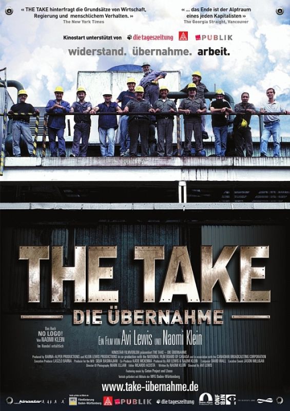 „The Take - Die Übernahme“ erzählt die packende Geschichten einer Industriearbeitergruppe im von wirtschaftlichen und politischen Krisen geschüttelten Buenos Aires, Argentinien. Von Verzweiflung und Armut zermürbt beschließen die Arbeiter eines Tages ihren in einem Vorort der Hauptstadt gelegenen ehemaligen Arbeitsplatz, die „Forja“-Fabrik für Autoteile, zu besetzen, zu übernehmen, und die Fabrik nicht mehr zu verlassen bis die Produktion wieder läuft.