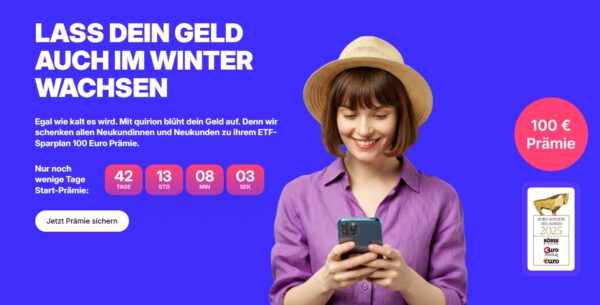 100€ Prämie für 12-Monats-Sparplan (50€) bei quirion