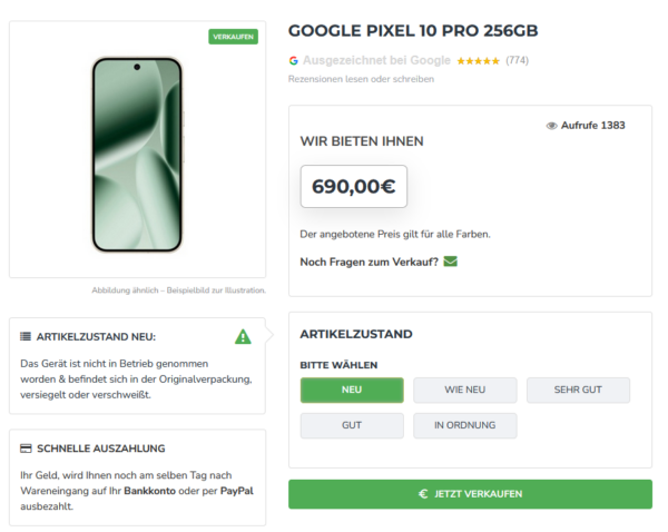 - – 854€ aktueller Vergleichspreis des Smartphones / oder bis zu 690€ per Trade-In