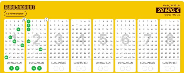 Um am EuroJackpot teilzunehmen, müssen Spieler fünf Hauptzahlen aus einem Bereich von 1 bis 50 sowie zwei Eurozahlen aus einem Bereich von 1 bis 10 auswählen. Die Ziehung findet einmal pro Woche statt, normalerweise freitags in Helsinki, Finnland. Die Gewinnchancen beim EuroJackpot sind im Vergleich zu anderen Lotterien relativ hoch, was zu einem stetigen Interesse an dieser Lotterie führt.
