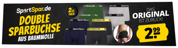 Neuer Deal seitens SportSpar, dort bekommt ihr jetzt den 2er-Pack Double Sparbuchse (verschiedene Farben, S-2XL) für 7,94€