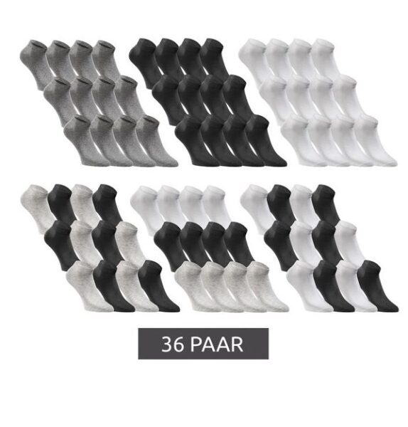 - Schwarz/Grau/Weiß: 12 Paar schwarze Socken, 12 Paar graue Socken, 12 Paar weiße Socken