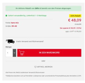 Der Versand wie auch eine eventuelle Retoure erfolgt kostenlos.