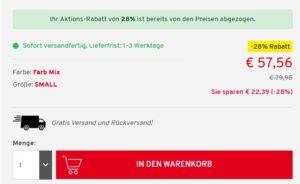 Der Versand wie auch eine eventuelle Retoure erfolgt kostenlos.