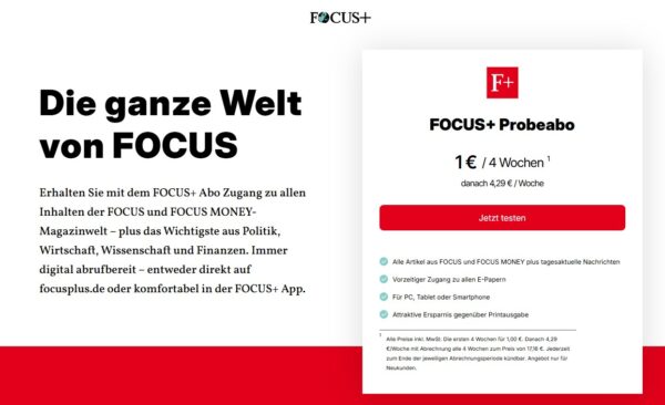 4 Wochen FOCUS+ Probeabo für NUR 1€