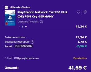 50€ PSN Guthaben (PlayStation Network) für 41,69€
