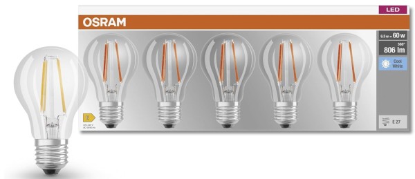 - 5er Pack Osram LED Base Classic A60 Filament LED-Lampen für 7,99€ bei Amazon.de