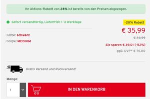 Der Versand wie auch eine eventuelle Retoure erfolgt kostenlos.
