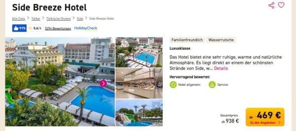 Der Abflug bei meiner Testbuchung ist Stuttgart. Ihr erhaltet 7 Tage All-Inclusive mit Flug ab 460€, aber auch andere Flughäfen sind günstig!