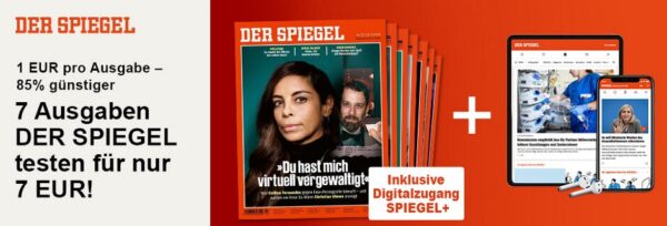 Rechnen wir das Ganze einmal kurz durch, um den enormen Sparfaktor zu verdeutlichen. Eine einzelne gedruckte Ausgabe des SPIEGEL kostet am Kiosk aktuell 6,50€. Für 7 Ausgaben müsstet ihr normalerweise 45,50€ bezahlen – und da ist der digitale Zugang für SPIEGEL+ noch gar nicht mit eingerechnet.