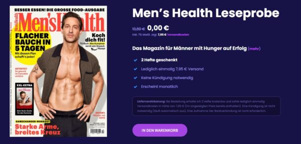 Bei Aboheld erhaltet ihr derzeit 2 Ausgaben Men’s Health für 7,95€ (statt ~13,80€)