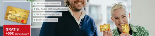 - Die Aktion 50€ Startguthaben ist nur gültig für Neukunden, die erstmals eine gebührenfreie Mastercard Gold beantragen und diese nach Onlinebeantragung mindestens einmal bis zum Ende des Folgemonats zur Zahlung einsetzen. Das Startguthaben wird im Anschluss an den Aktionszeitraum dem Kreditkartenkonto gutgeschrieben.