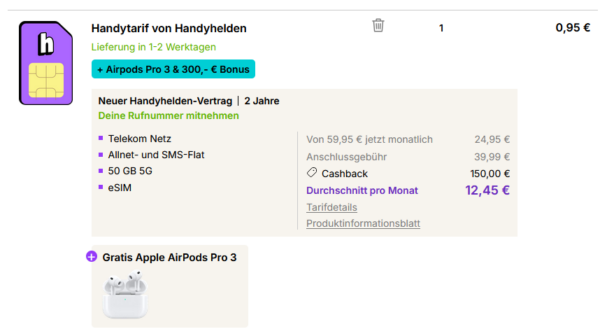 - + 0,95€ Zuzahlung für die AirPods Pro 3