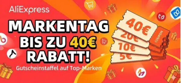 Bei AliExpress erhaltet ihr im Rahmen der Markentage bis zu 40% Rabatt auf ausgewählte Artikel.