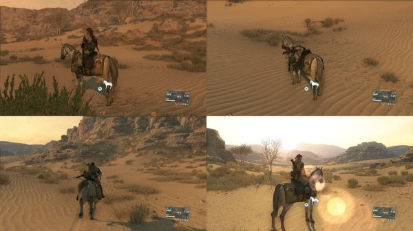 Der erste Auftrag steht ins Haus, um mich langsam wieder an das Infiltrieren zu gewöhnen. In der Wüste von Afghanistan liegt mein Ziel und Ocelot begleitet mich noch bis zum Ausgangspunkt. Ab hier bin ich wieder auf mich allein gestellt. Da sitze ich nun also auf meinem treuen Ross, oben auf einer Klippe, inmitten des Feindgebietes und lasse meinen Blick über die karge Wüstenregion schweifen. Atemberaubend. Hier können wir zum ersten Mal die Glanzleistung der Entwickler bestaunen. Die Texturen entführen uns in eine phänomenale Landschaft. Wüstenstürme fegen überzeugend über uns hinweg, aufwirbelnder Sand verleitet mich zum Husten und die Bewegungen von Pferd und Protagonist haben eine flüssige und realitätsgetreue Abfolge, die sich wunderbar in das Game integrieren lassen. Optisch, meiner Meinung nach, sehr gelungen. Wer die Vorgänger gespielt hat, dürfte an dieser Stelle auch keinerlei Probleme haben, sich in die Steuerung einzuarbeiten. Die Tastenbelegung ist übersichtlich und intuitiv angeordnet. Hier gefällt mir persönlich die Steuerung per Gamepad noch besser, als die via Tastatur. Beides ausprobiert, beides für gut befunden, Controller besser – so einfach ist das.