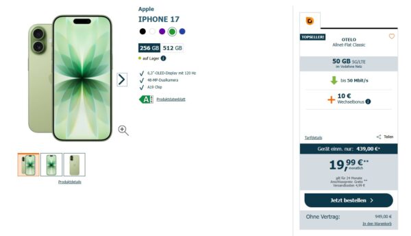 Fazit: Starker Deal mit dem Apple iPhone 17 im Vodafone-Netz, bei Interesse sollte man hier sehr zeitnah zuschlagen.