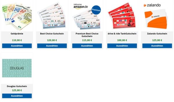 Diese Prämien stehen zum Beispiel zur Auswahl: