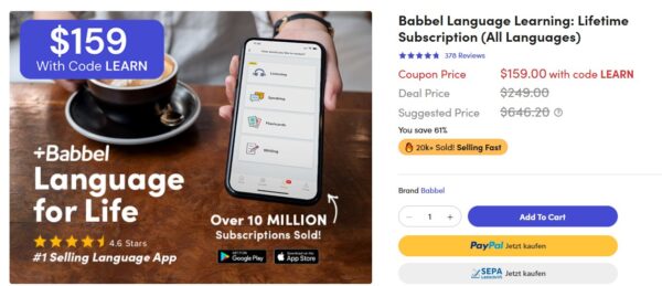 Babbel: Lebenslanger Zugang zum Sprachen Lernen ab ~138€