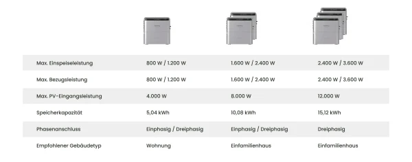 - Paralleler Betrieb von bis zu drei Geräten: Ermöglicht eine Erhöhung der Systemleistung, um den hohen Energiebedarf größerer Haushalte zu decken.