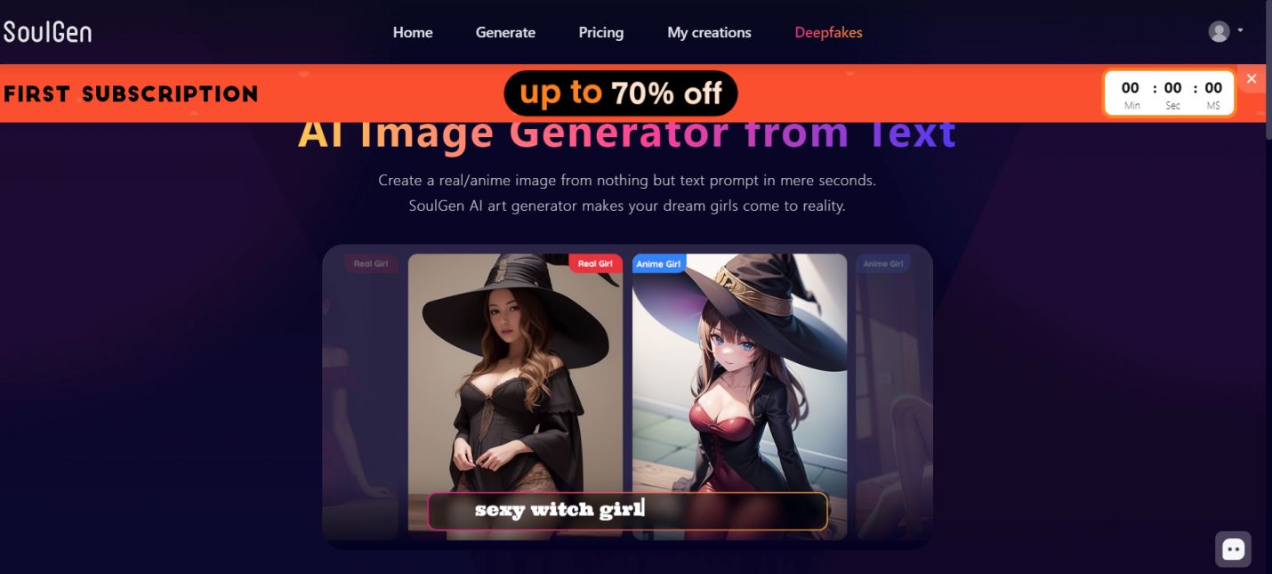 - Öffnen Sie die offizielle Website von SoulGen und wählen Sie die Option Generieren.