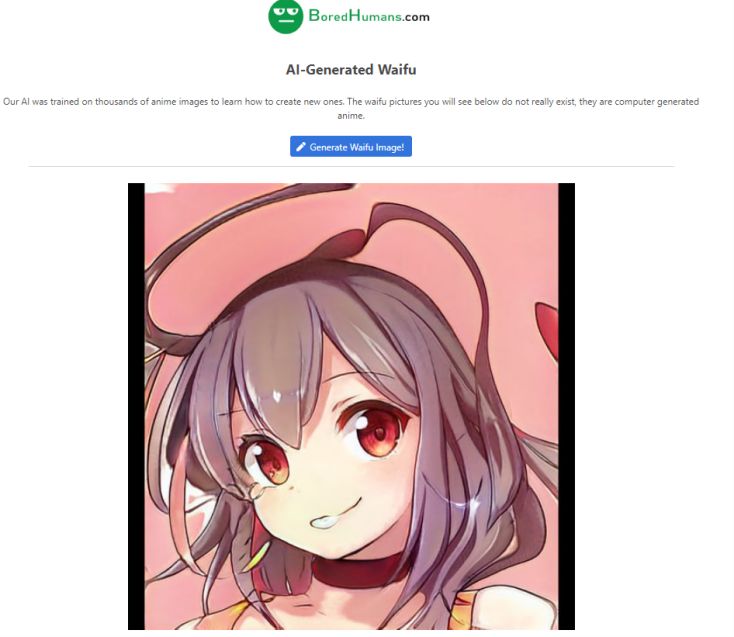 BoredHumans hat eine große Auswahl an KI-Tools, zu denen auch das AI-generierte Waifu-Tool gehört. Es basiert auf leistungsstarken KI-Algorithmen und einer großen Datenbank mit Tausenden von Anime-Bildern, mit denen du neue Anime-Charaktere erstellen kannst. Es ist ein großartiges Werkzeug für Waifu Schöpfer, die Anime Waifu schnell und einfach produzieren wollen.