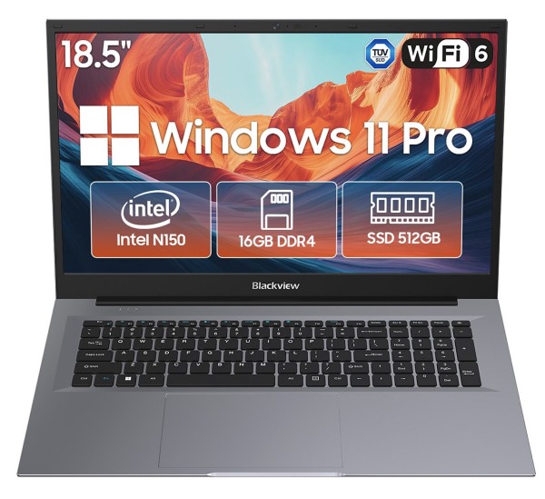 Die Eckdaten:- Der Blackview AceBook 10 verfügt über einen 18,5-Zoll-Großbildschirm mit Full-HD-Auflösung (1080p) und einem Screen-to-Body-Verhältnis von 84 %. Dadurch bietet er viel Platz für Designarbeiten, Office-Anwendungen und Online-Kurse. Auch mehrere parallel geöffnete Fenster lassen sich komfortabel nutzen, was die Effizienz im Alltag steigern kann. Die TÜV-Zertifizierung für reduziertes blaues Licht soll zudem die Augen bei längerer Nutzung entlasten.