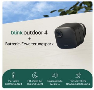 - Blink-Kamera Outdoor 4 + Batterie-Erweiterungspack für 132,99€ inkl. Versand bei Amazon