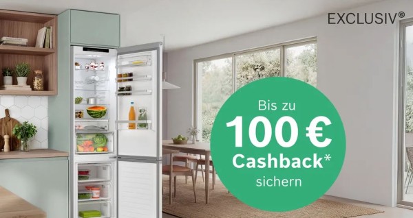 - Bosch EXCLUSIV: bis zu 100€ Cashback beim Kauf von Kühlschränken sichern