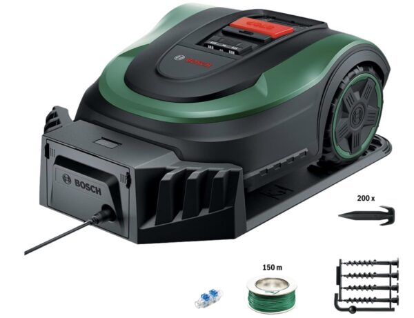 - Lieferumfang: Indego S+ 500, Akku 18V 2.5Ah, Ladestation und Befestigungsschrauben, Netzgerät mit 7 m Kabel, 150 m Begrenzungskabel, Kabelverbinder, 200 Befestigungsklammern, Karton