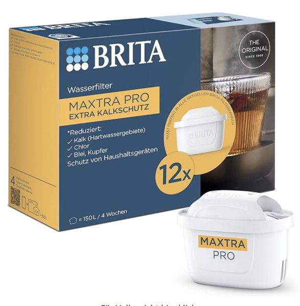 - BRITA Wasserfilter Kartusche MAXTRA PRO Extra Kalkschutz (12er Pack) für 56,85€ bei Amazon.de