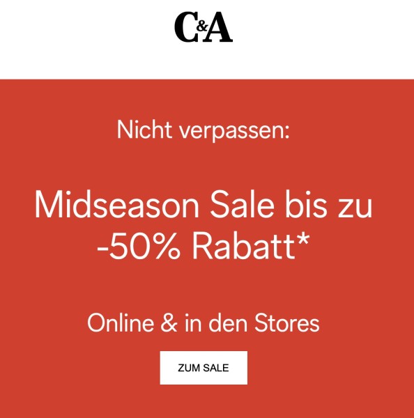 C&A: bis zu 50% Rabatt auf viele ausgewählte Artikel im Sale