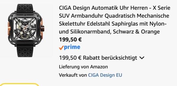 In 142 Bewertungen bekam die CIGA Armbanduhr gute 4,5/5 Sterne.