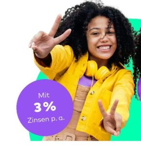Ein weiteres Highlight ist das Startguthaben von 25€. Dieses wird nach erfolgreicher Kontoeröffnung gutgeschrieben und ist ein netter Bonus, der sich gerade für Kinder natürlich besonders lohnt. So macht der Start ins erste eigene Konto gleich doppelt Spaß zusätzlich bekommt ihr 3% Zinsen p.a. auf das Tagesgeld für 6 Monate bis 500€ Guthaben .