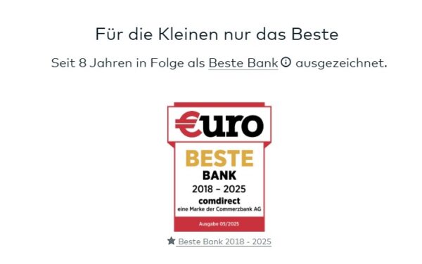 comdirect JuniorGirokonto kostenlos + 25€ Startguthaben + 3% Zinsen p.a. auf das Tagesgeld