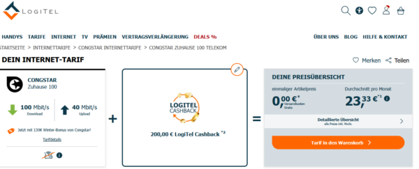 Alternativ haben wir unten auch die Angebote mit 24 Monaten Laufzeit von Logitel mit bis zu 240€ Cashback verlinkt.