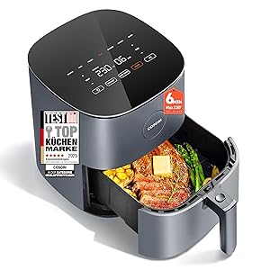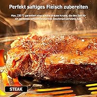 - Max 230 ℃, genieße knuspriges und saftiges Fleisch: Durch die Kombination von Max 230° und 360° Wärmezirkulation sorgt diese Heißluftfritteuse für knusprigen und saftigen Fleischgeschmack