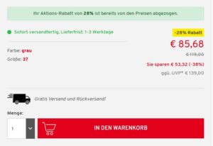 Der Versand wie auch eine eventuelle Retoure erfolgt kostenlos.